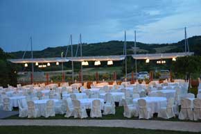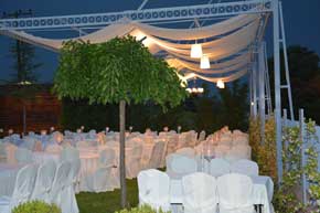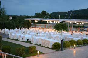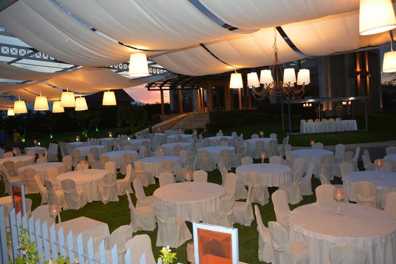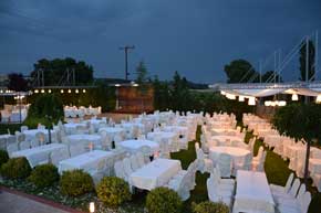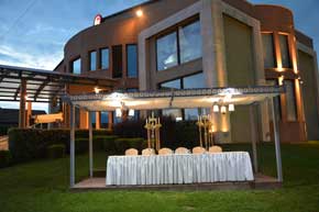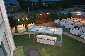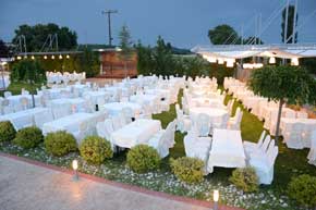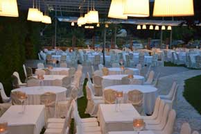 Σε ένα περιβάλλον όπου οριοθετείται από καταπράσινο γκαζόν, διατρέχεται από λιθόστρωτο μονοπάτι που οδηγεί στον κυρίως χώρο, ο οποίος διαμορφώνεται για την δική σας εκδήλωση σ’ ένα ήσυχο και ειδυλλιακό μέρος για εσάς και τους καλεσμένους σας, με το φωτισμό το βράδυ να αναδεικνύει την φυσική ομορφιά του περιβάλλοντα χώρου.
